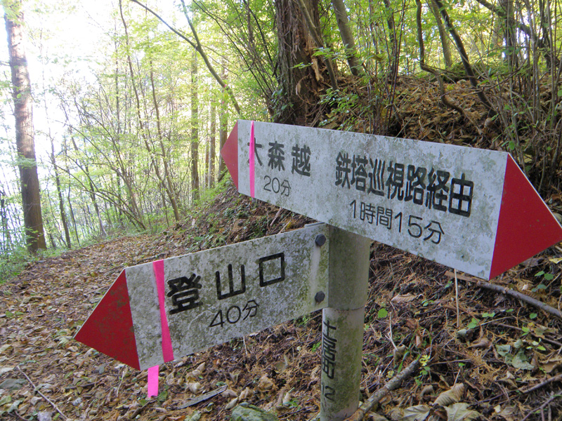 そこからけっこうな登りを登りきったら、大森越へ到着。 河又から直接ここに歩く道もあるみたい。