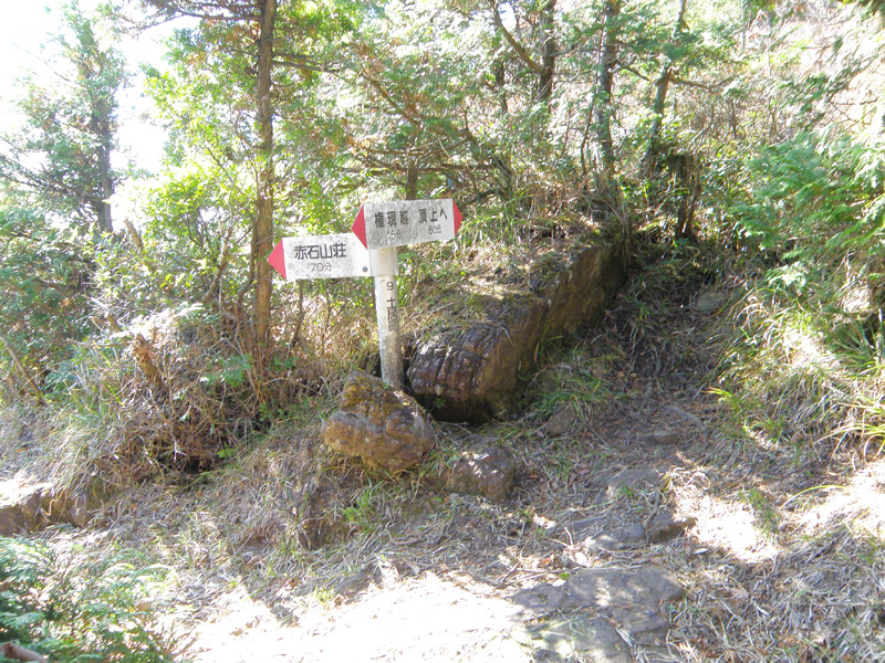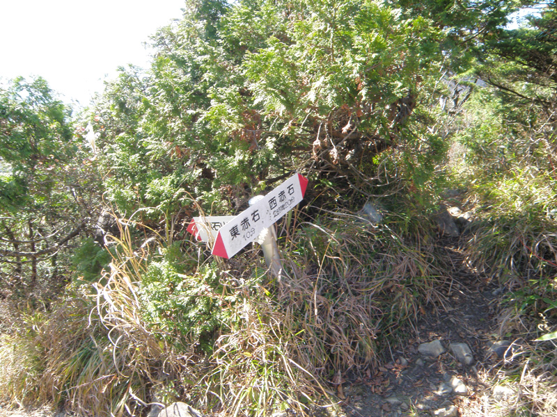 少し進むと、赤石山荘方面と、山頂方面に別れる道へ。 山頂方面へ進む。