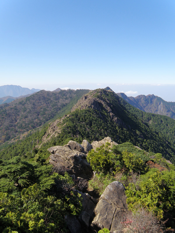 こっちには2パーティいた。 こちらからの景色も最高。 八巻山、ちょこんと前赤石山、西赤石山が見える。