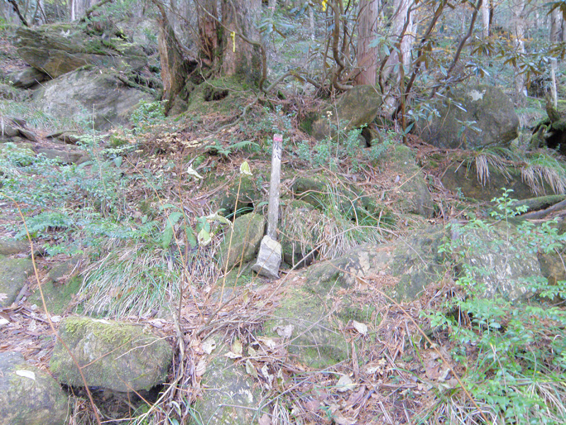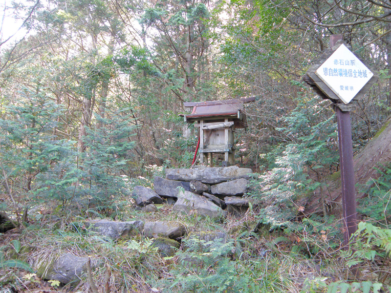 けっこう急な道を30分ほど歩き、小さな祠のあるところまで到着。