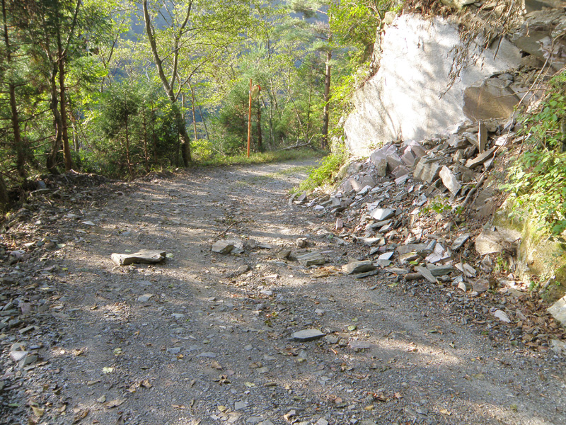 その先にも、通ること自体は問題ないが、小さな落石のおこった個所も。