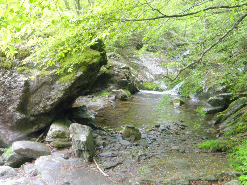 ここまで来たら、登山口はもう近い。 八間滝を横目に見ながら、筏津登山口に到着。