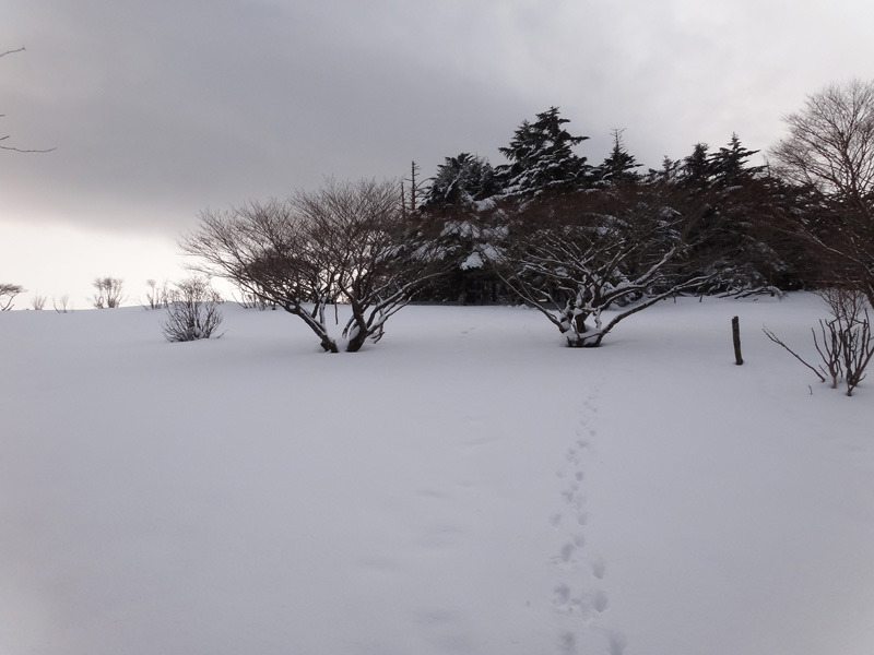 山頂方面を見てると、何やら茶色い動物が走ってきた。 犬かタヌキかキツネか? 肉眼で種類が確認できる前に、動物はどこかに行ってしまった。