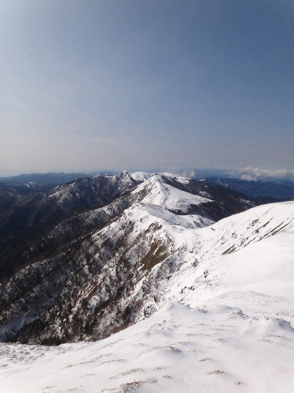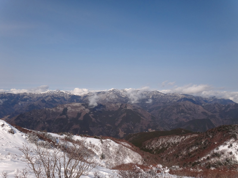 剣山、次郎笈はもちろん、丸笹山、塔丸、黒笠山、矢筈山まで。 冬の快晴は最高だね!