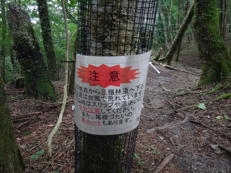 荒廃した登山道は通行禁止なのかと思ったけど、別に禁止ではなかった。 「荒れてるので気を付けて」みたいな感じ。 台風でダメージを受けたとはいえ、人気ナンバーワンだったルートが、1年弱くらい歩かれなくなっただけで、道が無くなるとは思えない。 今でも歩いている人はいるみたいなので、道自体は「悪路」にもならず残っていそうな気がする。
