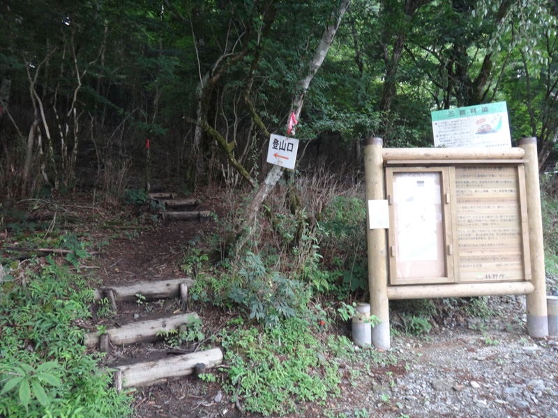 西山林道登山口に着いた時には汗ダク。 ここで水分補給して、まだ序盤なのに、既に700mlくらい消費してしまった。 今日はお茶2L+水1L持ってきているので、まだまだあるのだけど、序盤でこの消費量はやばい。