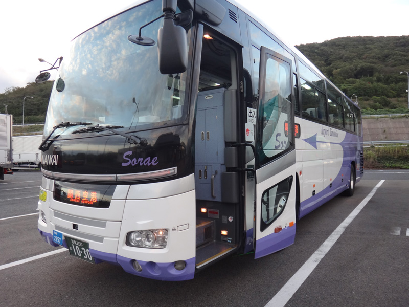 4時38分発の関西国際空港行きのバスに乗り込む。 車内では当然寝る…… 乗客が4人しかおらず、イスは倒し放題。 バス車内がけっこう寒かった。