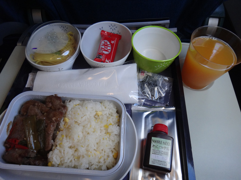 機内食はチキンかビーフが、普通は選ぶことができるのだけど、ビーフが大人気だったのか? CAが回ってきたときには、既にビーフは売り切れ。 まぁどちらでもよかったのだけど、チキンの機内食を食べる。 味は……まぁあまり美味しくなかったな。