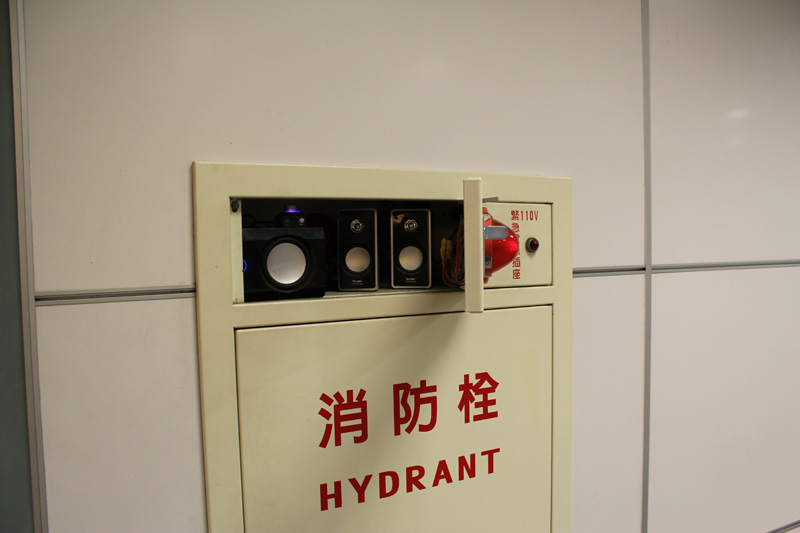 駅の地下街を歩いていたら音楽がなっている。 その音楽がどこからなっているかと言うと、消火栓から鳴っていた。 非常ベル辺りの扉が開かれ、その中から電源を取っているよう。 日本でこんなことしたら間違いなく怒られるのだけど、台湾では許される。