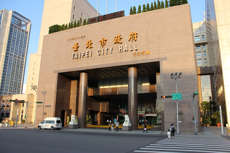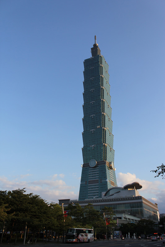 市政府を通り抜けたら、目の前に台北101が! 508mの巨大ビルがそびえる!