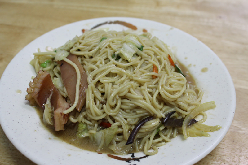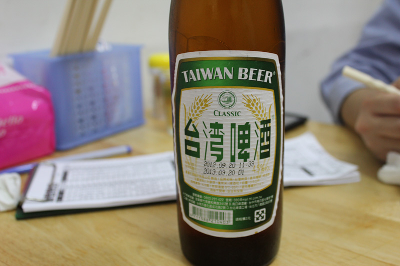 で、でてきたのがこれ。 見た目は焼きそばっぽい。 台湾の飲食店は基本的には飲み物は無い。 水すら無い。 外で買ったものを持ち込むのが当たり前なのだけど、この店にはお茶が置いてあった。 お茶を飲んだが、予想通り甘かった…… 甘くて食事中に飲めたものじゃないので、ビールを飲むことに。