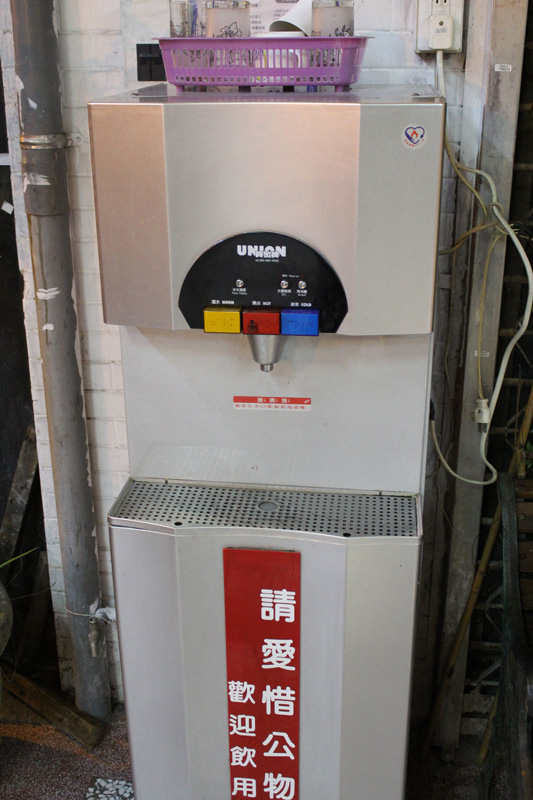お寺には水の機械が設置されており、自由に飲むことができる。