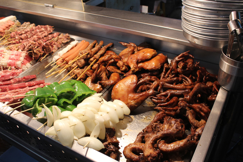 鶏の足っぽいものがあったので、それを食べてみる。 食べたいものを自分で器に取って、渡すと焼いてくれる、そういう店だった。