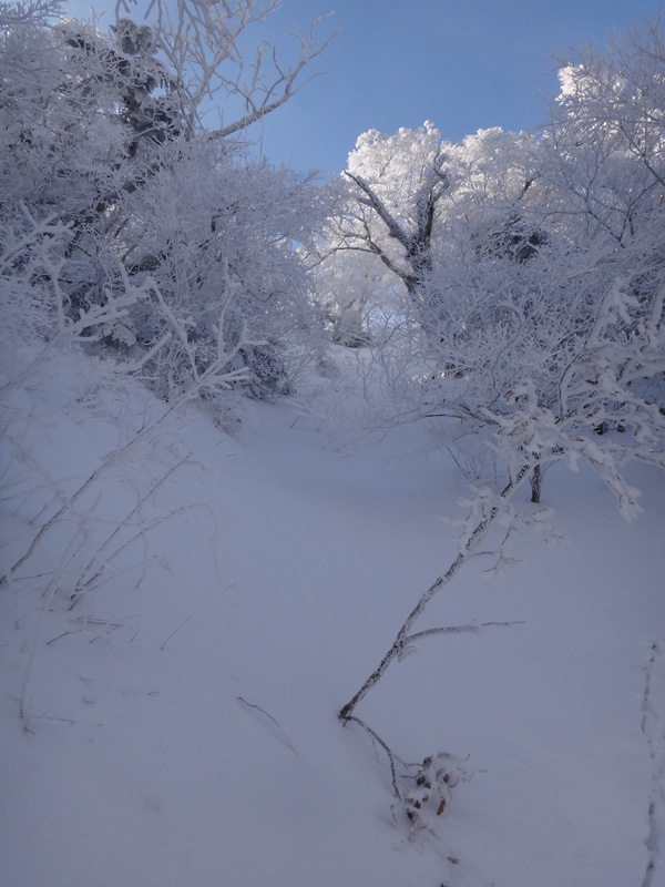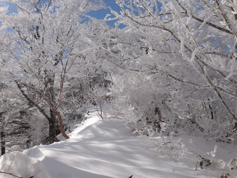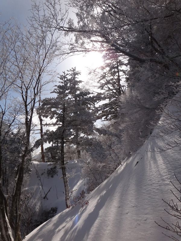 前社ヶ森までは、夏場なら木の階段が多いコース。 だが、冬の時期は雪に埋まっており、雪の斜面になっている。 歩いた感じでは、例年より雪が少なく感じたな。