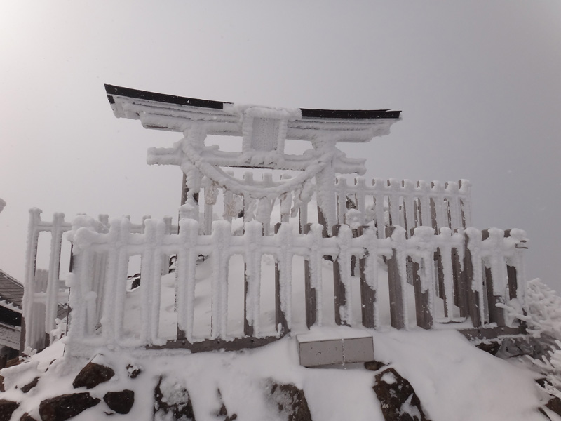石鎚神社まではのんびりと歩いていく。 やはりネックウォーマーはほしかった。 首回りと口の周りが寒いなぁ。