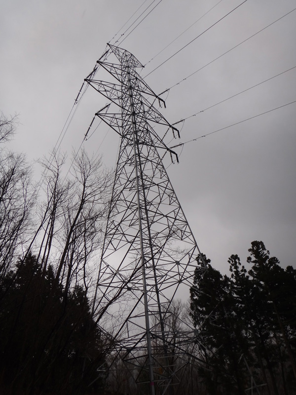 だが、しばらく歩くと、鉄塔が出現。 そして、そこから先の道が消えた。