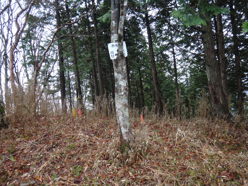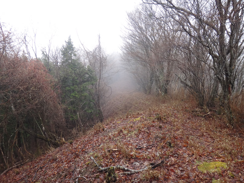 東の斜面をあがっていく。 上がること数分、無事尾根道に合流した。 どこで分岐したんだ? しっかりとした道を歩いてきたので、道は踏み外してないはずなのに……