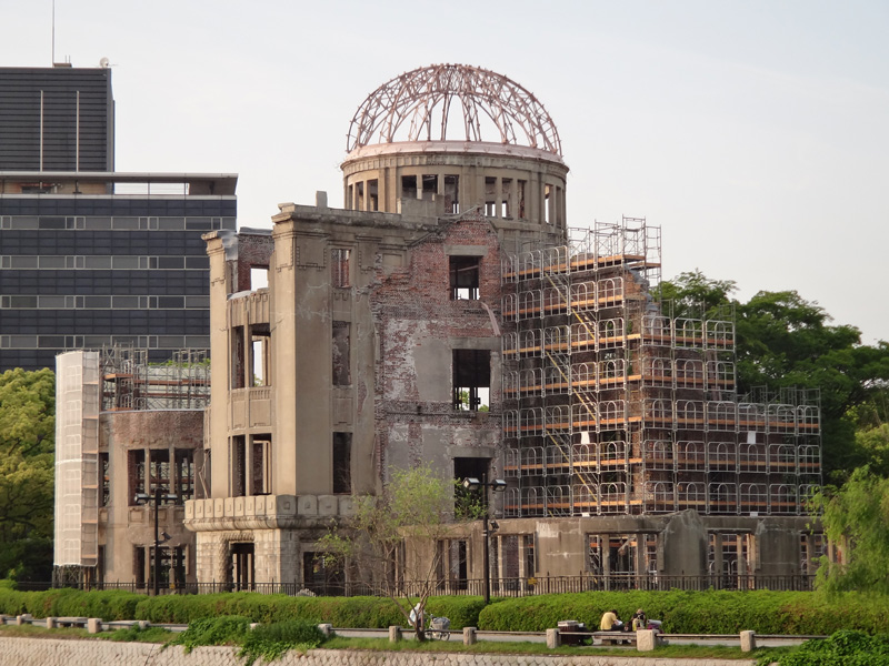 今日は記念館入ったが、記念館の閉館時間に追われて、ゆっくりと見ることができなかった。 原爆ドームも見学したが、壁の強度検査のための足場が組まれていて、いつもとは違った風景になっていた。