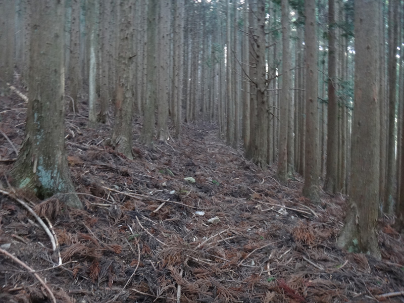 民家が終わってからは造林地帯に入っていく。 けっこう急な登山道だった。 こんなに急だったっけ??