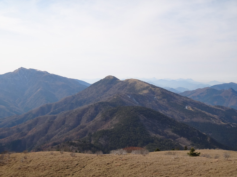 正面には剣山、次郎笈、一ノ森、向かって右手には三嶺、塔丸、向かって左手には赤帽子山。