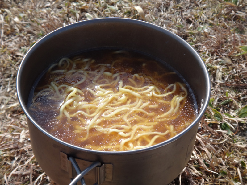 気持ちのいい山頂でラーメンを食べてゆっくりと休憩する。 このくらいの気温ならいつまでもいられそうな気がする。 ザックの上に横たわって油断すると寝てしまいそうだ。 そろそろ下りようかな。
