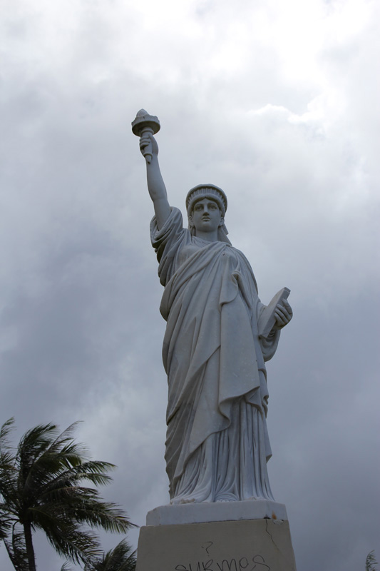 自由の女神は、小ぶりだった。 この辺りの広場には、ヤシの木がたくさん生えている。 そして足元にはヤシの実がたくさん転がっている。 これ、落ちてくるのか?
