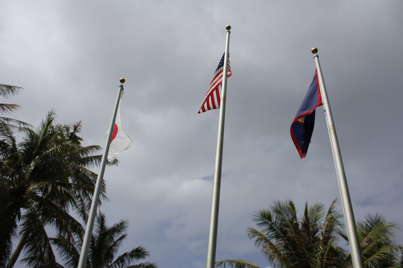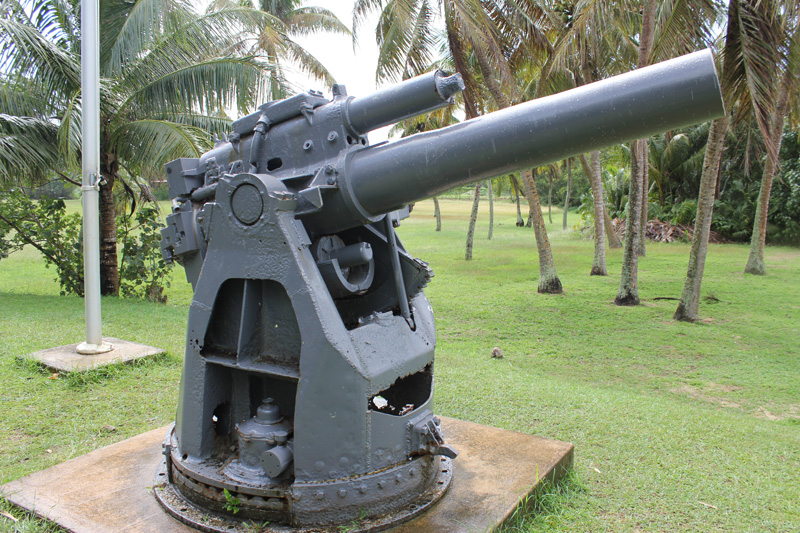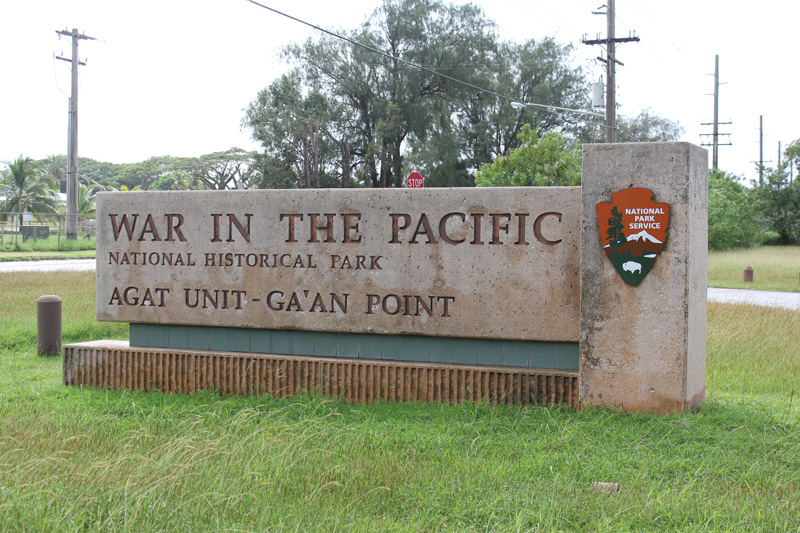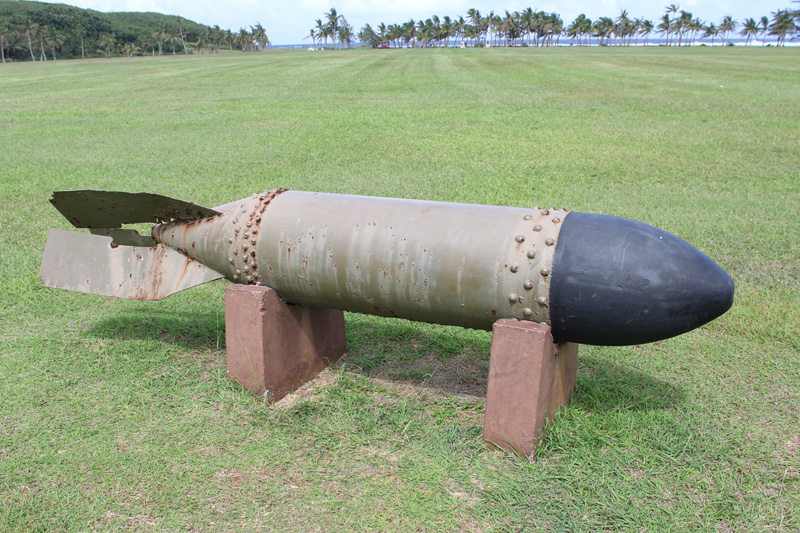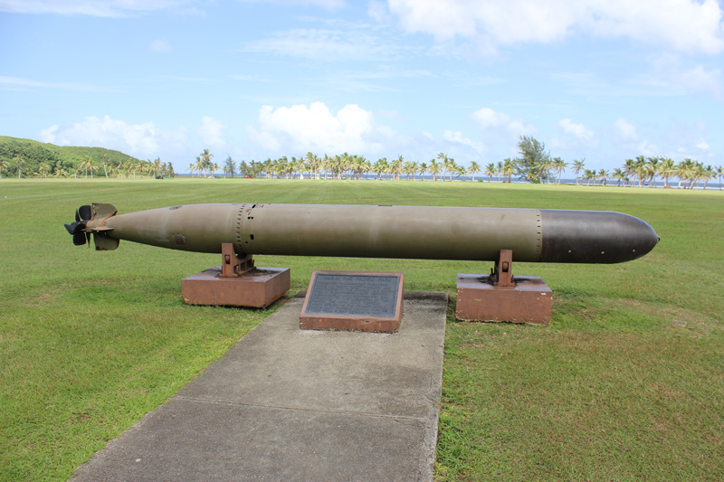 次は「太平洋戦争国立歴史公園」。 入口には魚雷がお出迎え。 広大な敷地の奥に駐車場があり、戦争の歴史の看板があった。 70年前、ここで激しい戦争が繰り広げられていたなんて、今の姿からは全く想像できなかった。