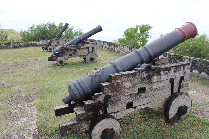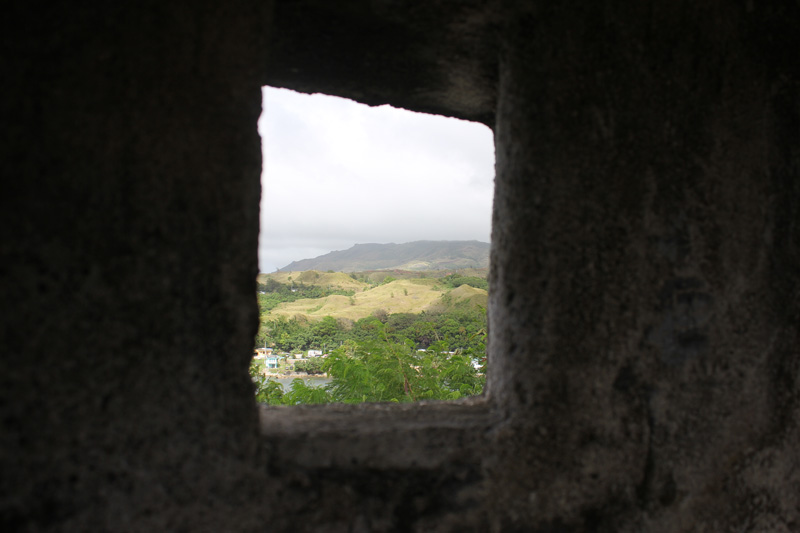 そしてすぐ近くの「ソレダッド砦」へ。 ここは前回も来たな。 今回は日本語しゃべれる案内の人がいなかったが、建物の小窓から見える景色は、季節のせいか、草が多い茂っていて全然見えなかった…… 大砲の穴の中にゴミが捨ててあるのは残念だった。