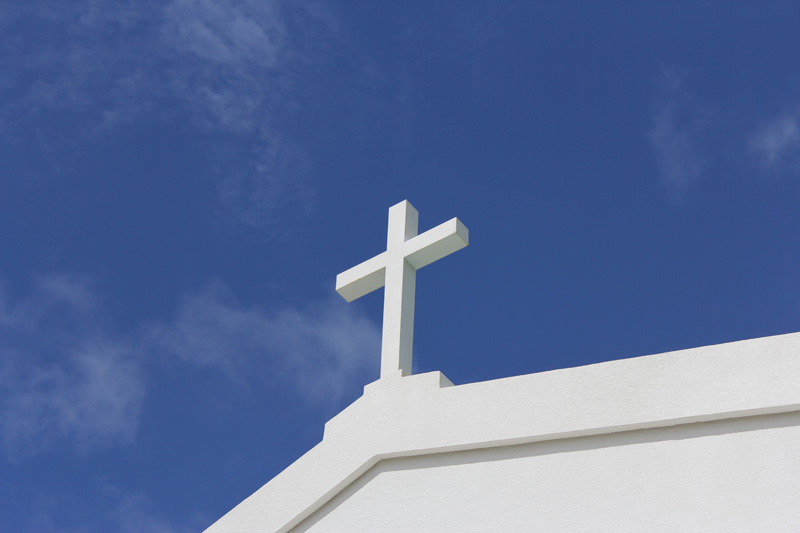 後ろには協会があって、白い教会と青空が綺麗だった。