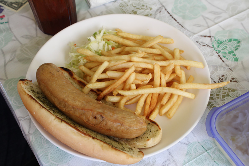それから少し走ったところで、ようやくハンバーガーショップを発見。 お店の名前は「Mc Kraut’s」という名前。 small buildingというので、小さなビルを探しながら走っていたのだけど、店はビルじゃなくて、家だった。 英語のbuildingはビルではなかったのだ……