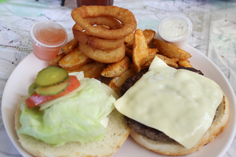 ハンバーガーショップでは「1/2 LBS BLACK ANGUS BURGER W.POTATOE WEDGES AND ONION RINGS, CHEESE」というのを注文した。 オニオンリングはわかったけど、LBSとANGUSってなんだろうか??(LBSは重さの単位のポンドのことで1/2LBSなので、230gくらいらしい、BLACK ANGUSは黒毛牛だった)
