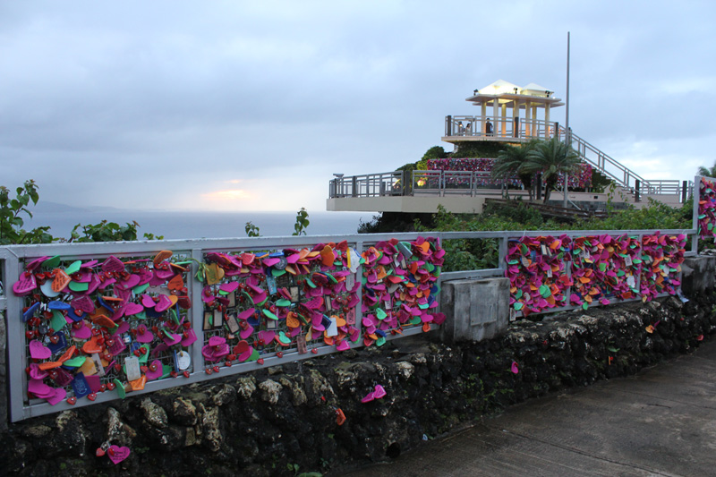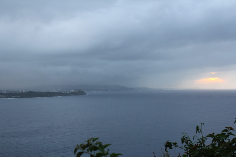 時間も17時過ぎになって、マイクロネシアモールはかなり渋滞していた。 恋人岬に着いたのは18時くらい、沈む夕日が見たかったのだが、あいにくの雨。 結局夕日は見られず、20分くらいしか滞在せず、戻ってきた。 これからマイクロネシアモールに行こうと思ったけど、道が混みすぎていてたどり着くのが困難そうだったので、ホテルに戻る。