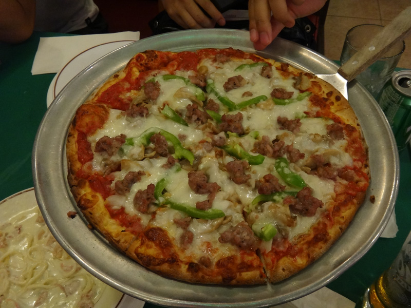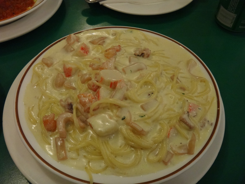 結局戻ってきたのだけど、途中にかなりの雨に降られてしまった…… 夕飯はアンダーウォーターワールドの建物の南端の、シュリンプの店の2階にあるイタリアンで食べることに。