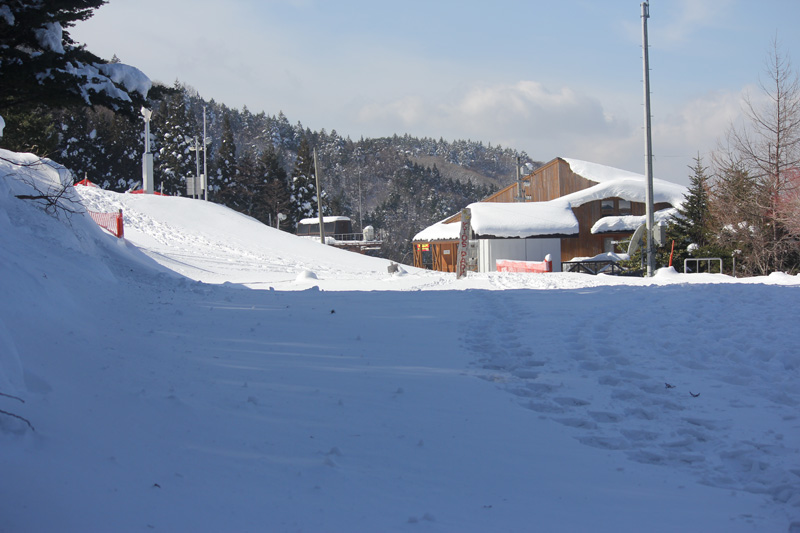 てっきり誰もいないと思っていたのに、先客が4組くらいいて、車を止める場所がない…… スキー場の駐車場へ入る道は、積雪が1mくらいあって入ることができない。