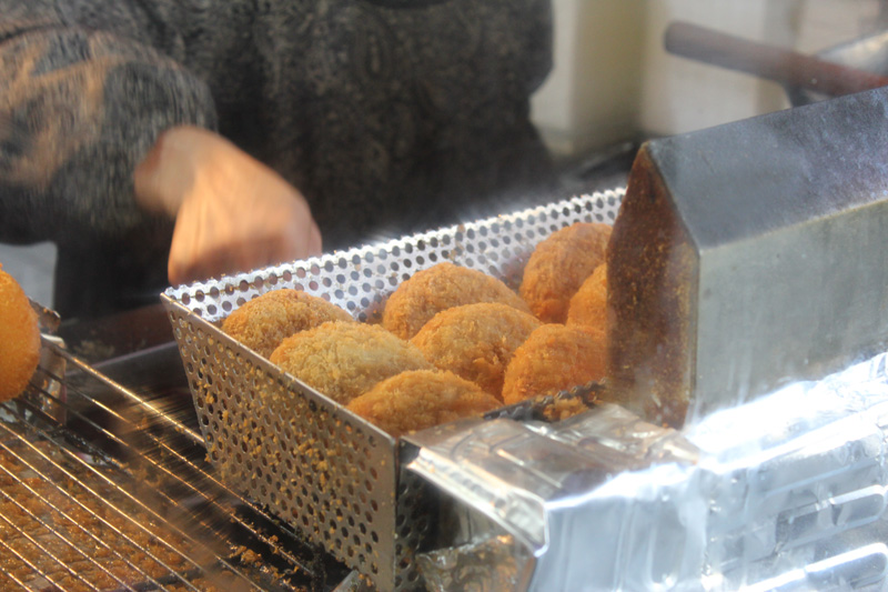 帰りに、参道を真っ直ぐ抜けた先にある、新町商店街の「平岡精肉店」というお店のコロッケを買って食べた。