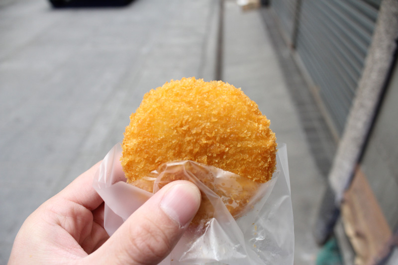 肉が中心部にあり、ジャガイモがその周りに、一番外側は衣の三重構造だった。 1つ130円もしたが、美味しかったな。