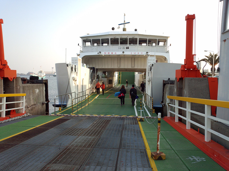 フェリーは座る場所が無かったので、外の通路に座っていたのだけど、風をまともに受けるので寒かった。