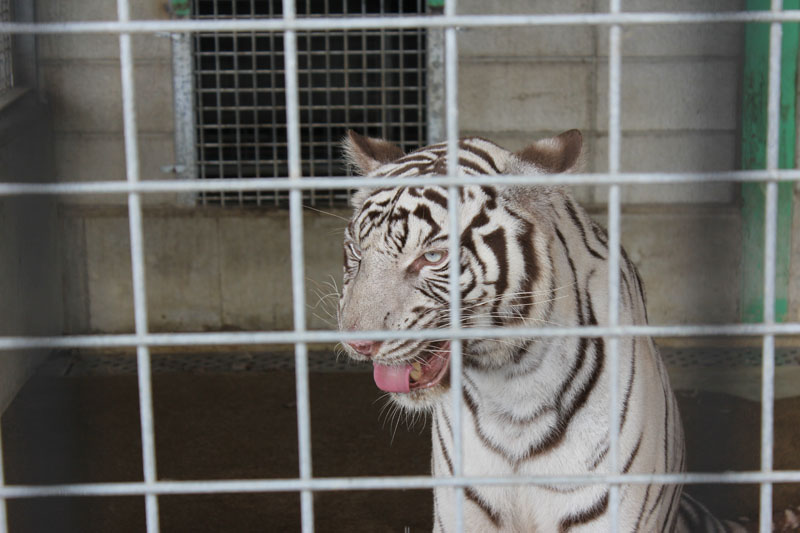 入園ゲートのところに、小さなバケツに入ったエサが500円で売られている。 園内の動物には自由にエサをあげることができる。 敷地内には犬が放し飼いにされていたり、サルがその辺にいたり、いろいろな動物がウロウロ歩いている。 普通にサルにブドウを投げたり、ウマにニンジンをあげたりできる。