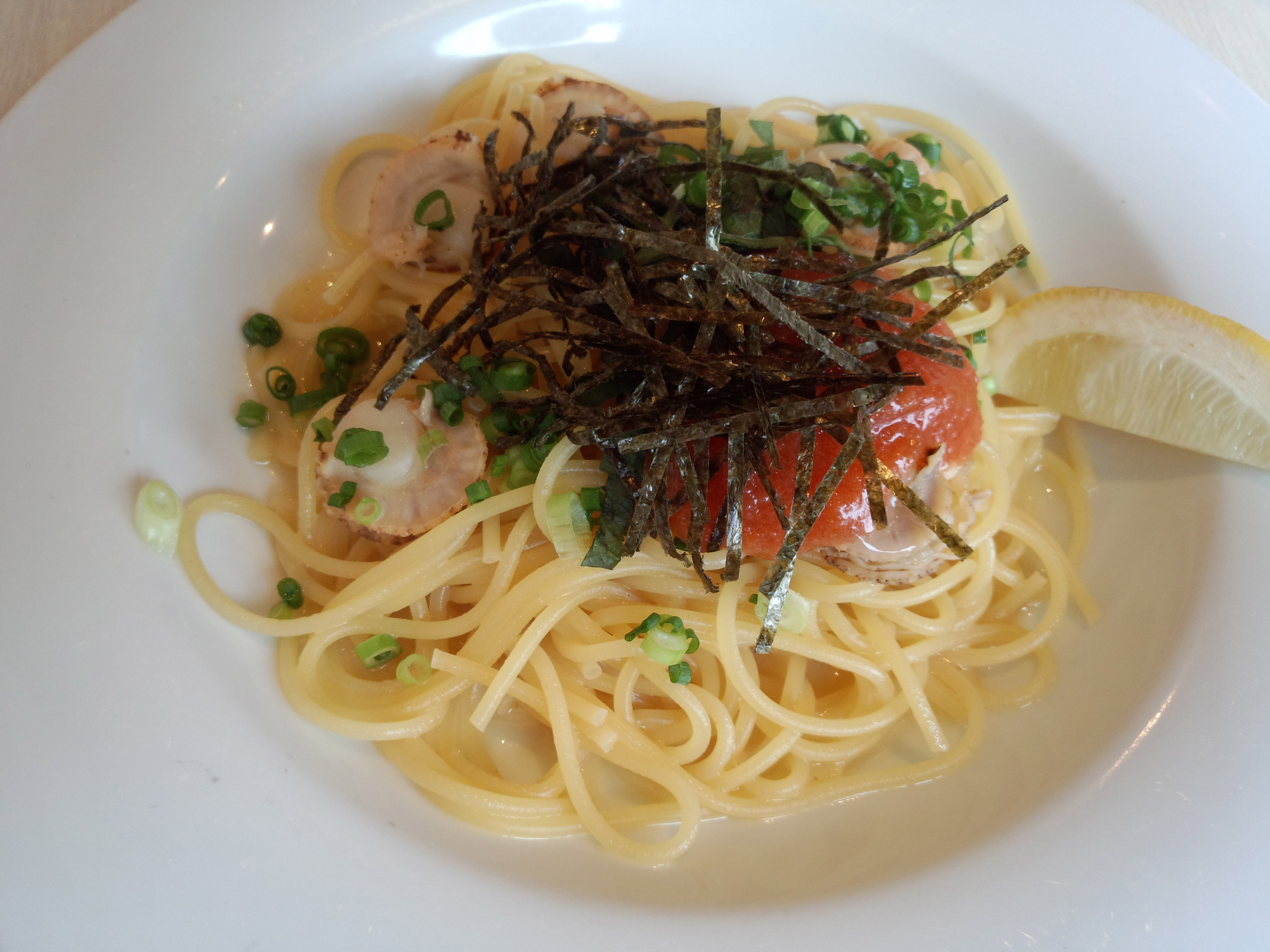 今日のお昼ご飯はグラッチェへ。 今日はペペロンチーノではなく、ホタテと明太子のスパゲッティにした。 これも美味しいけど、ペペロンチーノより200円も高いんだよな……