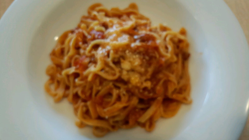クリーム系のパスタかトマト系のパスタに合うらしいので、スパゲッティボロネーズに変更。