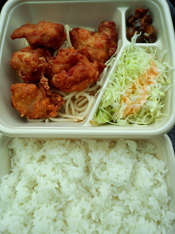 お昼はほっかほっか亭のから揚げ弁当。 ホットモットでは定番のから揚げ弁当だけど、ほっかほっか亭では、定番ではないし、値段も500円弱なので高いな。