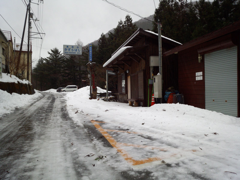 天狗塚登山口で利用する久保付近に来たけど、雨は変わらず。 これはもう登山無理だな。 夏だったら雨でも登山するけど、雪のシーズンの雨はかなりきついし、凍傷とかも怖い。