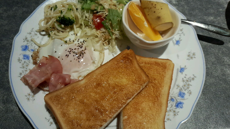 今日は朝から雪が舞う。 高松は雪が舞うことは多いけど、積もることは数年に一度しかないので、今日も積もらないだろう。 保育園と幼稚園に送って行き、喫茶店に着いた頃には、雪は雨に変わってしまった。 喫茶店ではいつものようにモーニングを食べる。 最近パンが足りないのだけど、パンだけ2枚にできるのか、今度聞いてみよう。
