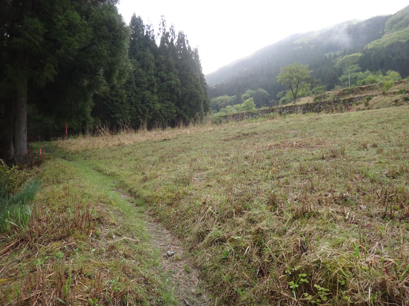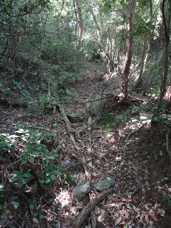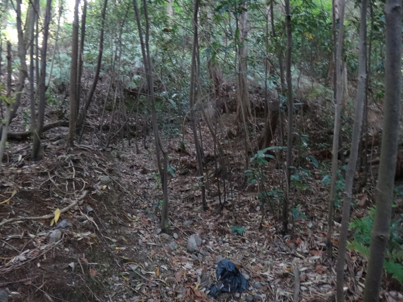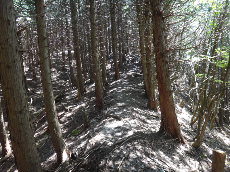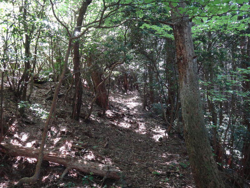 ここから先は地図通り、傾斜が落ち着いた状態でしばらく歩くことができる。 途中に432m地点があるのだけど、三角点とか見当たらず、大体の場所で時間を計測。 そこまで1時間20分近くかかっている。 ここから先は道ははっきりとしているので、それをひたすら歩いて行く。 途中で西から2番目、3番目の登山口に続いている分岐点があるはずなのだけど、それがどこなのかわからなかった。