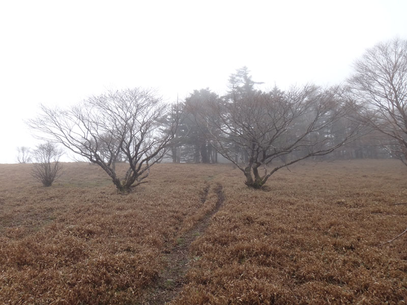 そんな中、どんどんと登っていく。 1791m地点を通過し、少し急な箇所を登ると、気持ちのいい広場へ。 今日は天気が悪く景色が見えないのが残念。