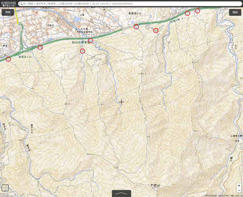 この地図でばっと登山口を調べると、8箇所くらいありそう。 東から、「関の原の南のT字路」「市場側橋の東」「新居浜CC付近に2ヶ所」「大久保特別支援学校南に2ヶ所」「新居浜IC東」「新居浜IC西」。