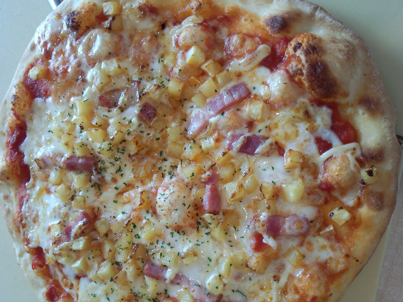 今日のお昼はグラッチェへ。 今日も35度超える暑い中、グラッチェまで歩いて汗だく。 お昼は「ベーコンポテトのピッツァ」を食べる。 いつも、ゴルゴンゾーラかマヨコーンばかりなので、たまには違うピザも美味しい。 食後はアッサムティーを飲んでゆっくりと過ごしながらゲームをする。