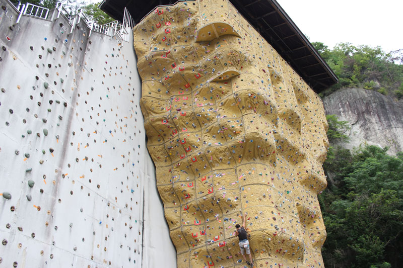 ここには、高さ15mくらいの屋外のクライミングウォールがあった。 ここから星のブランコまでは30分くらい歩くみたい。