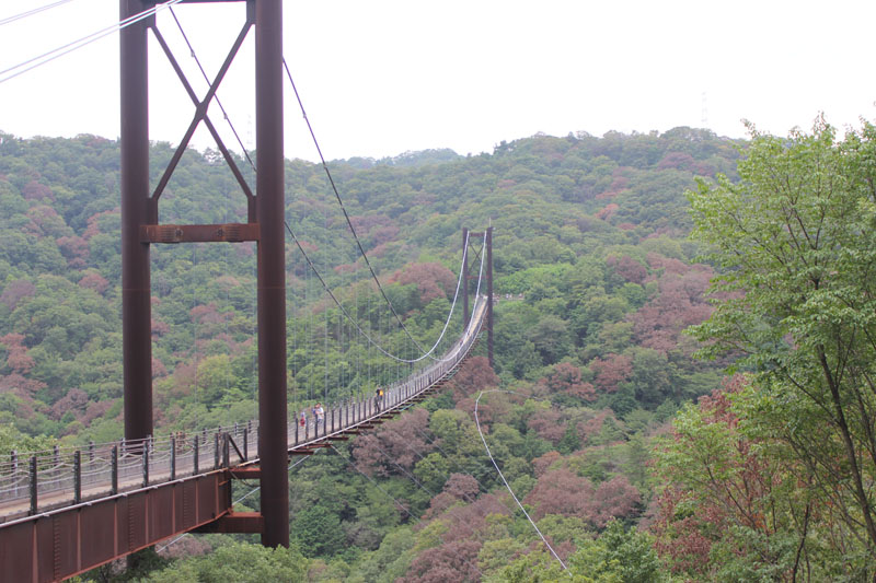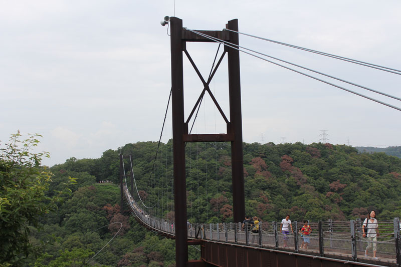 長さ280mもある吊り橋をわたって反対側に行く。 中央付近はかなり揺れていた。 反対側に回ったけど、雨も降りそうだし、他に何もなさそうなので、そのまま吊り橋を渡って戻ってきた。 大阪にこんなスポットがあったとは、知らなかったな。