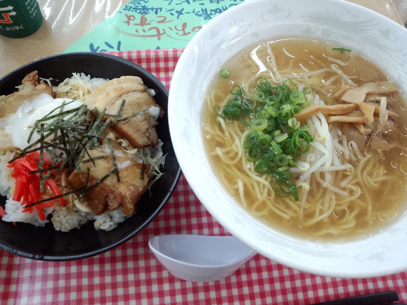 石鎚山SAでお昼ごはんを食べる。 塩ラーメン・チャーシュー丼セットを頼む。 塩ラーメンも美味しかったけど、チャーシュー丼がめちゃめちゃ美味しかった。